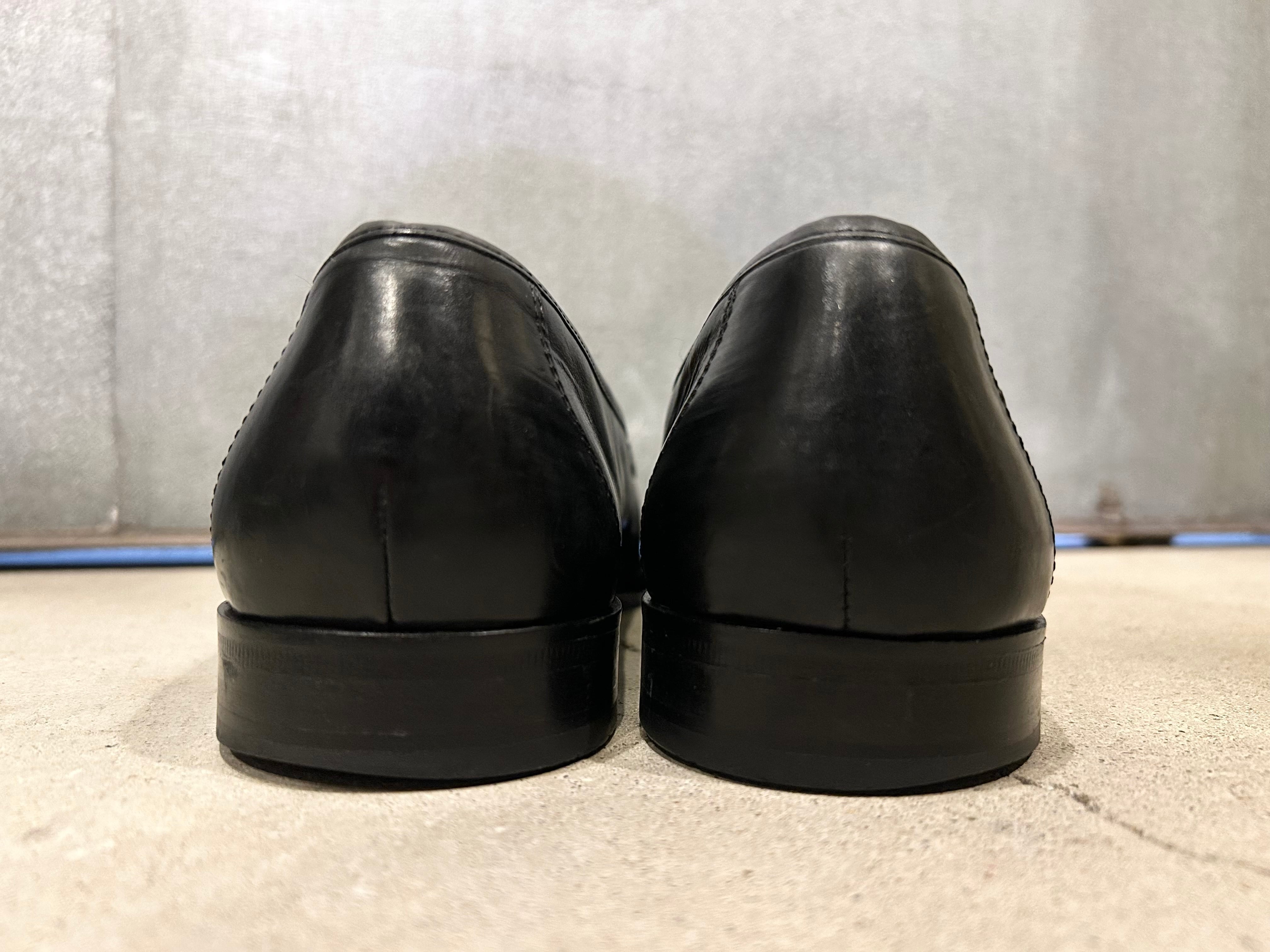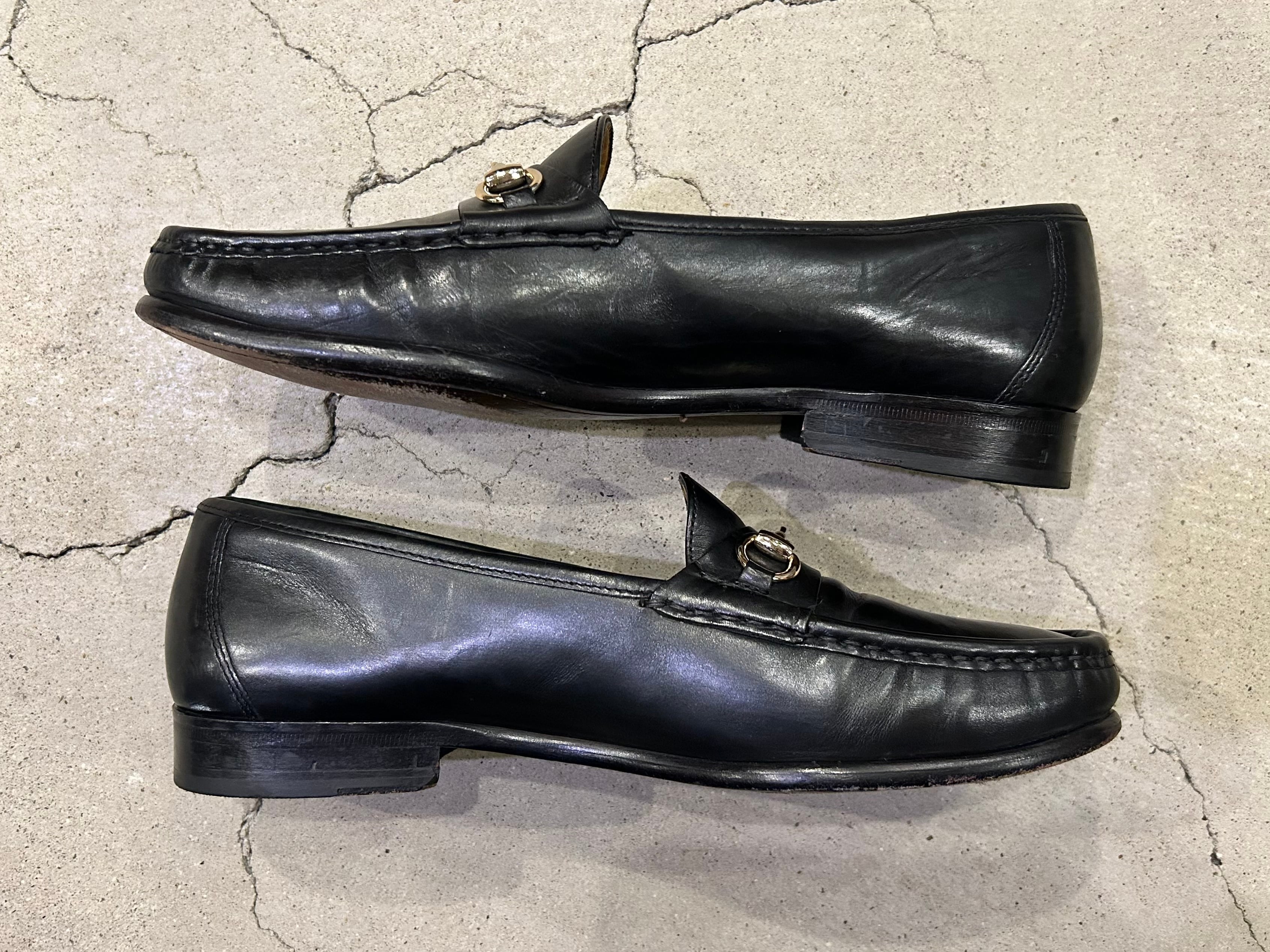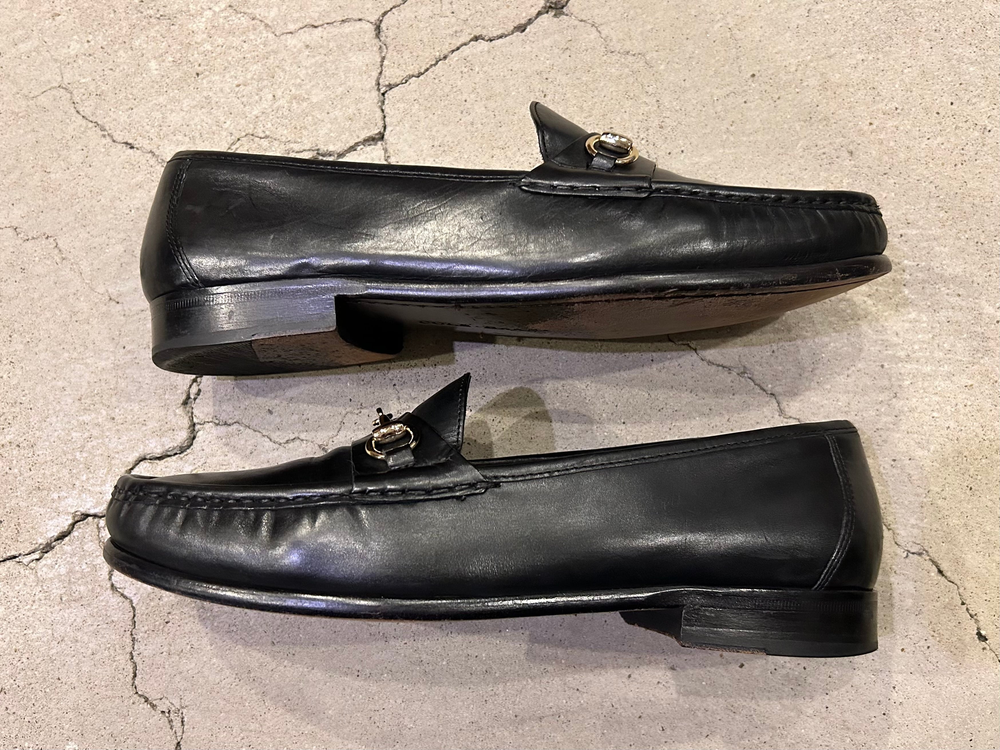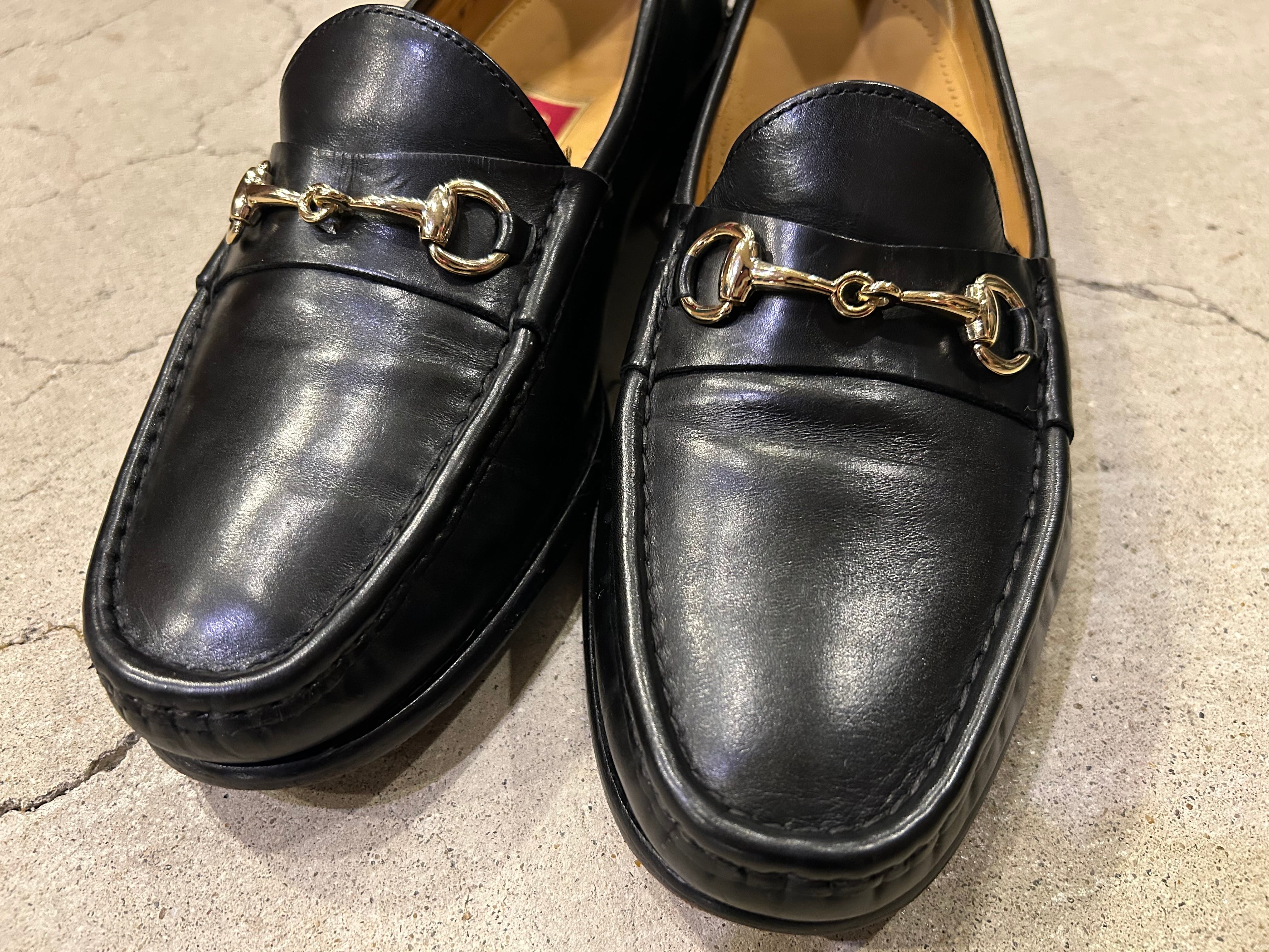 上質なブラックのレザーにゴールドのホースビットが映える、大人な雰囲気の一足◎