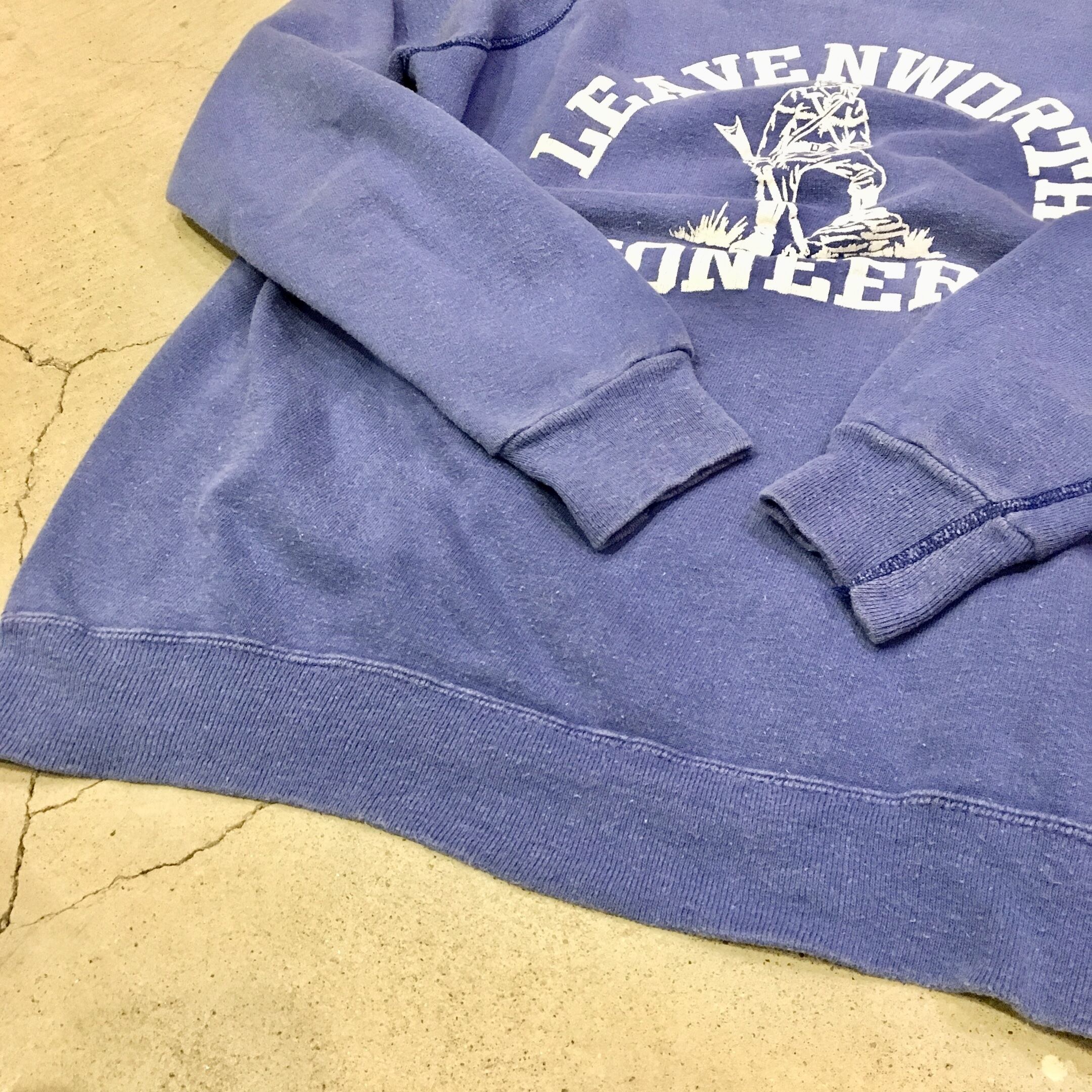 フェードしたブルーのボディに白の三段プリントがヴィンテージらしい良い雰囲気です。