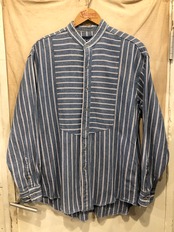 ストライプ柄のバンドカラーで一枚で着ていても雰囲気のある一着。