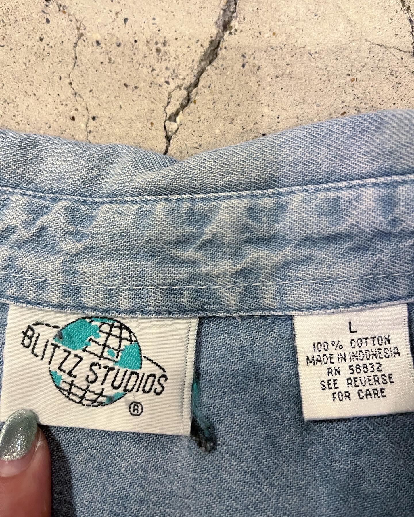 アメリカのコミックキャラクターでお馴染みのポパイが刺繍されたデニムシャツです‼︎
