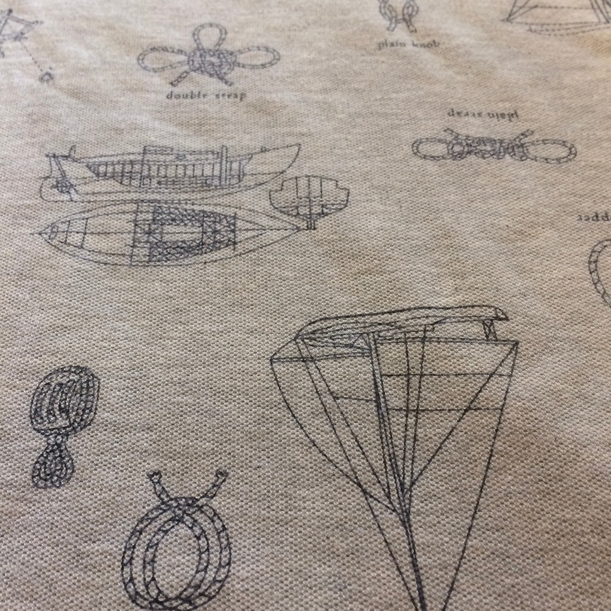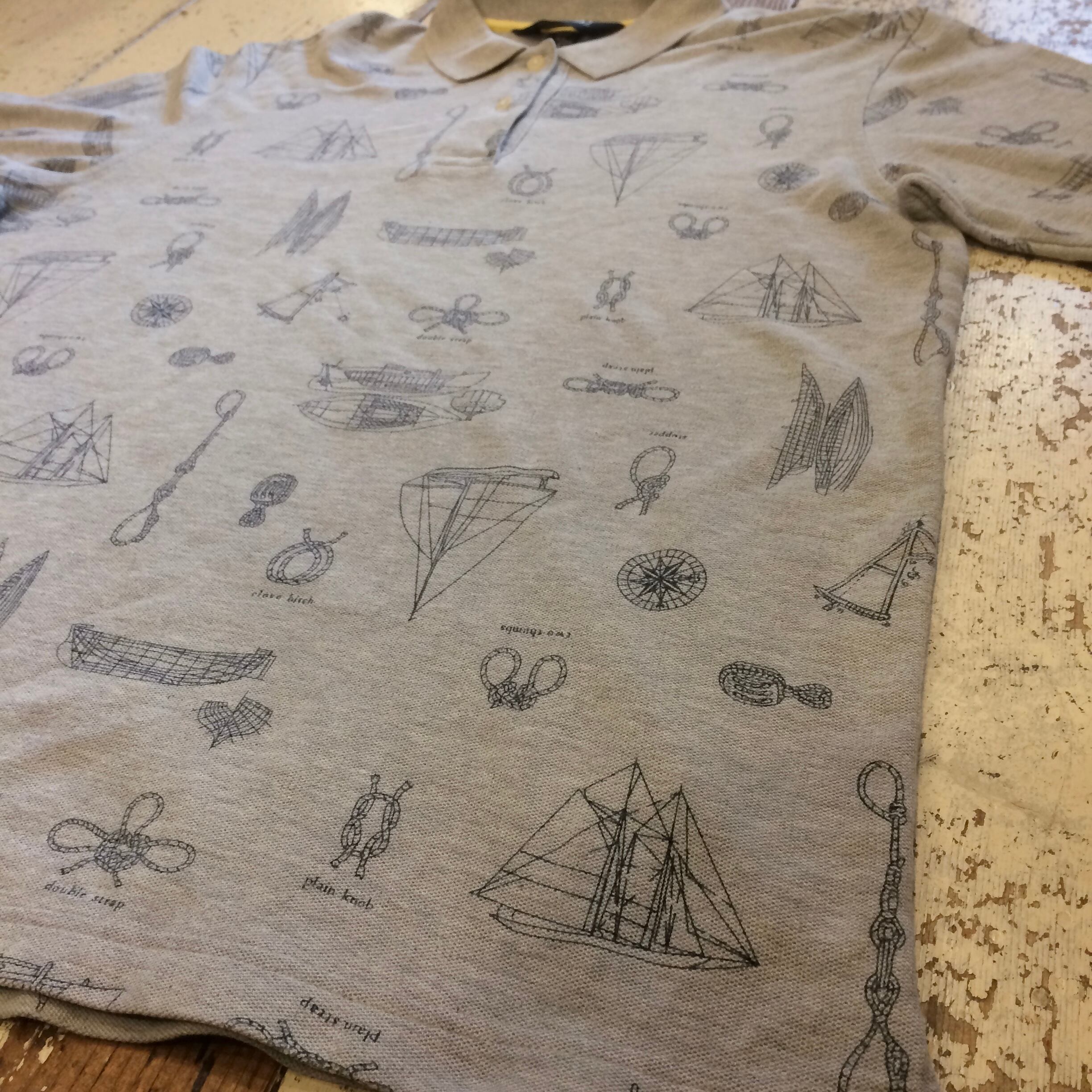 グレーベースにヨットや船、ロープなどのセーリングにまつわるプリントが全面にプリントされた面白い総柄の一着です◎◎