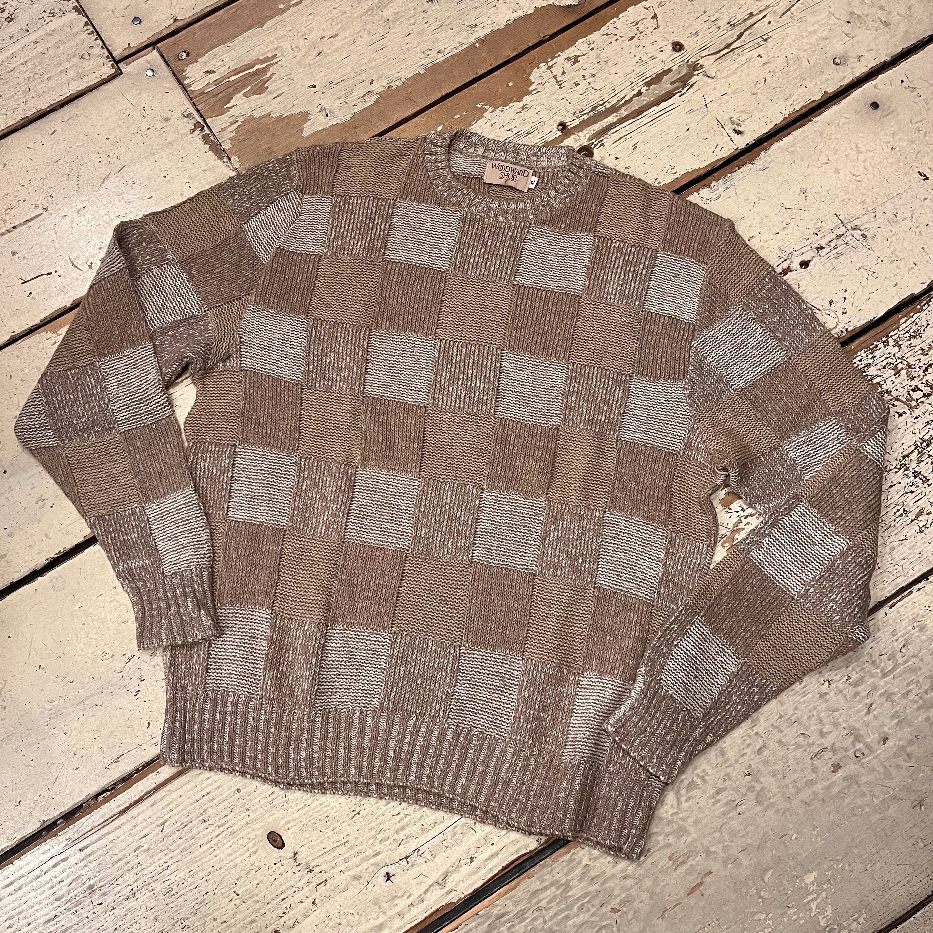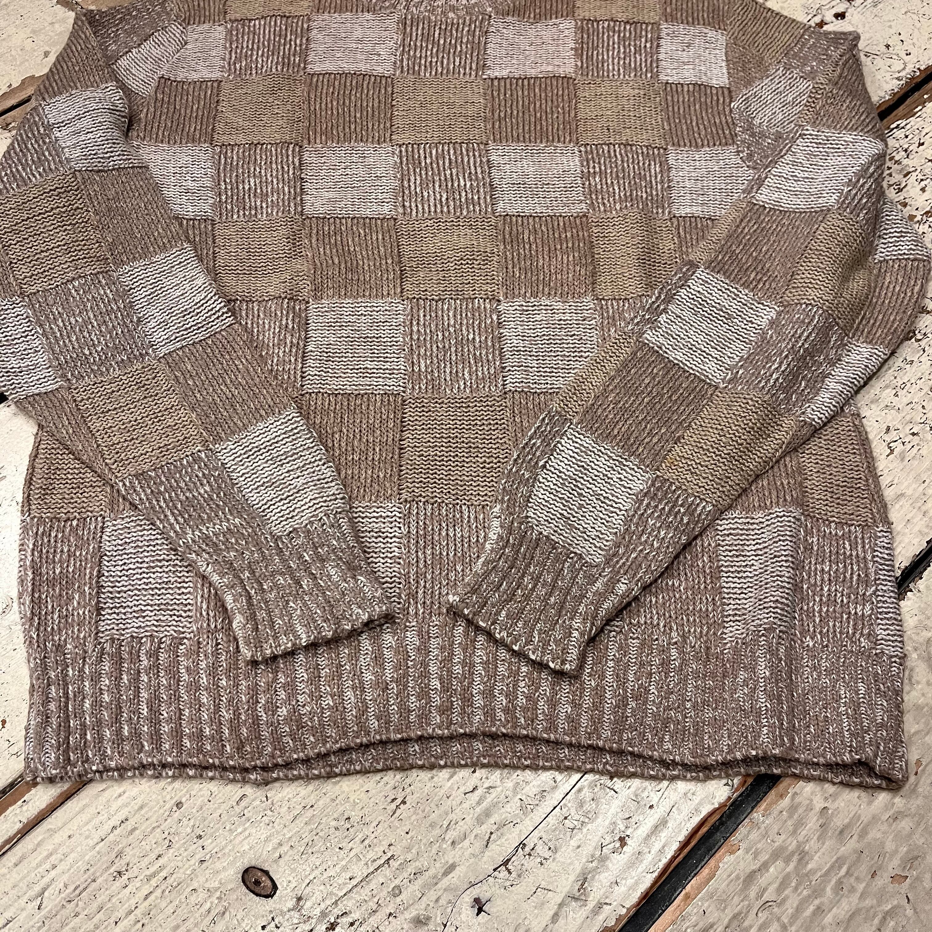チェッカー柄編み コットンニット